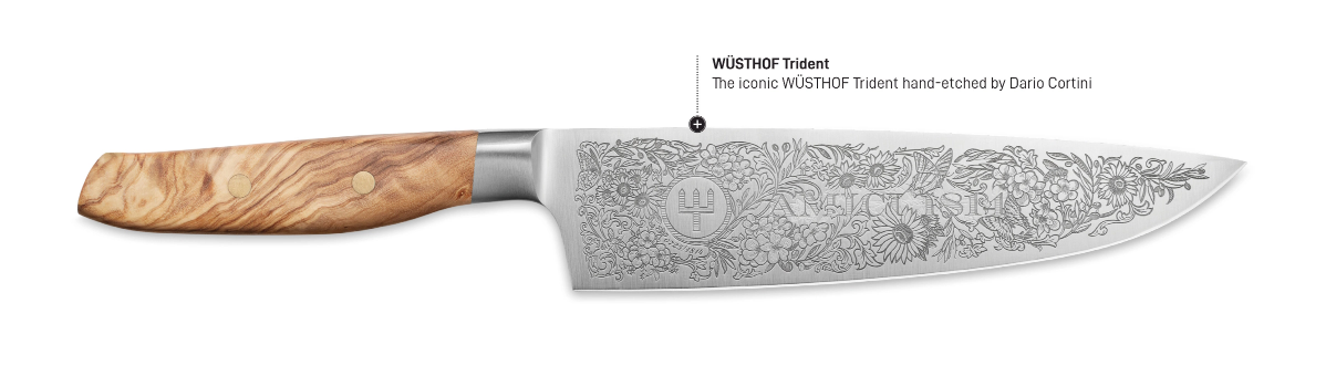 Our collaboration with the Italian master engraver Dario Cortini marks the first limited-edition knife of the WÜSTHOF 1814 Collection. The skilled filigree engraving on the carefully forged blade pays homage to the natural diversity of Italy and to the artist’s boundless love of life.