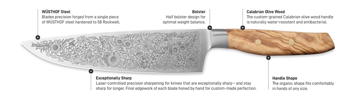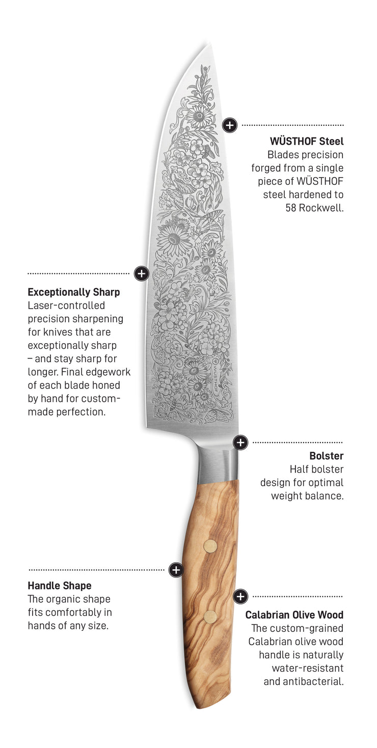 Designed by our team of experienced WÜSTHOF artisans in Solingen, Germany, our home for over 200 years, this masterpiece of a knife combines the long-lasting durability of our premium forged blades with the magnetic beauty of a centuries-old artform.