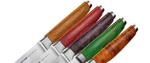 Its Yellow Tilia handle inspired by the golden sunflowers of Provence, and the Red Tilia handle inspired by the rich Berry of Provence, highlights the natural grain of the wood, ensuring every knife is one of a kind.