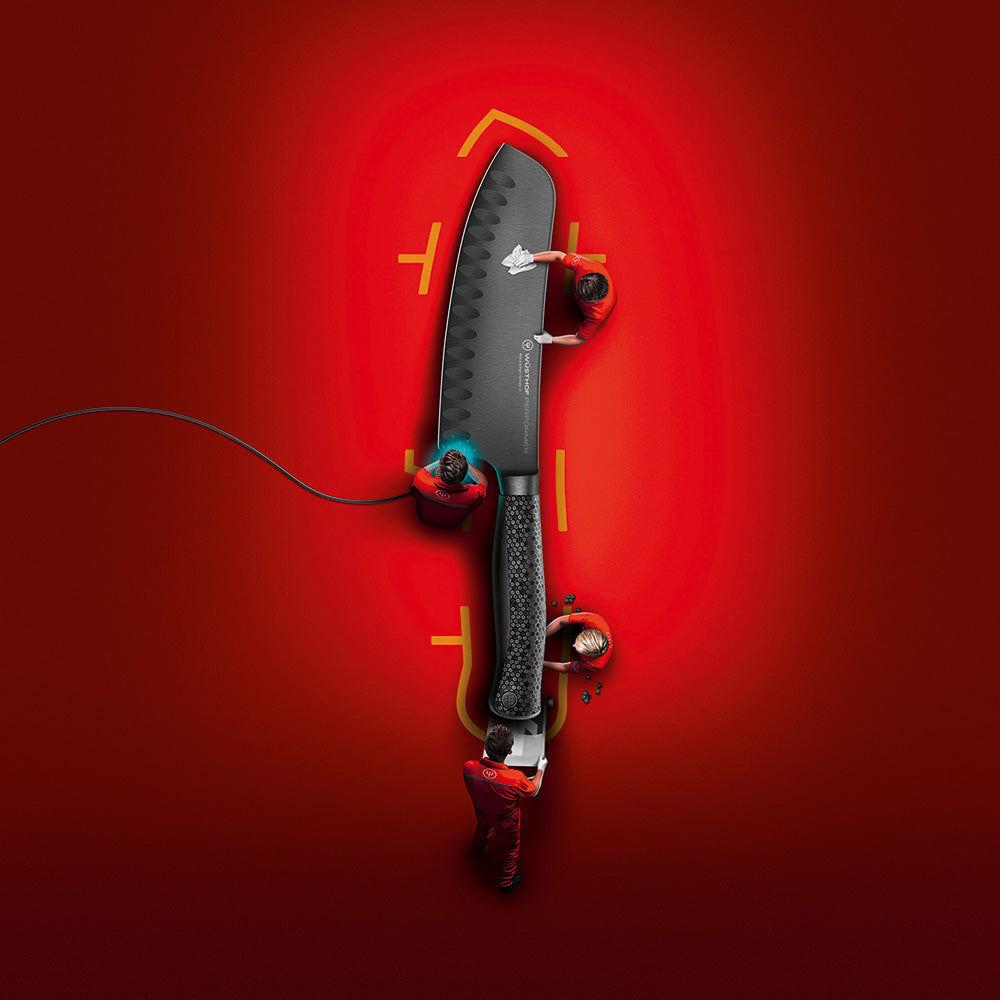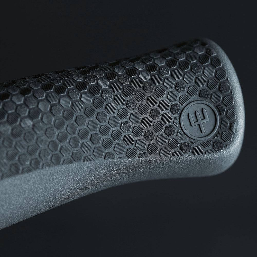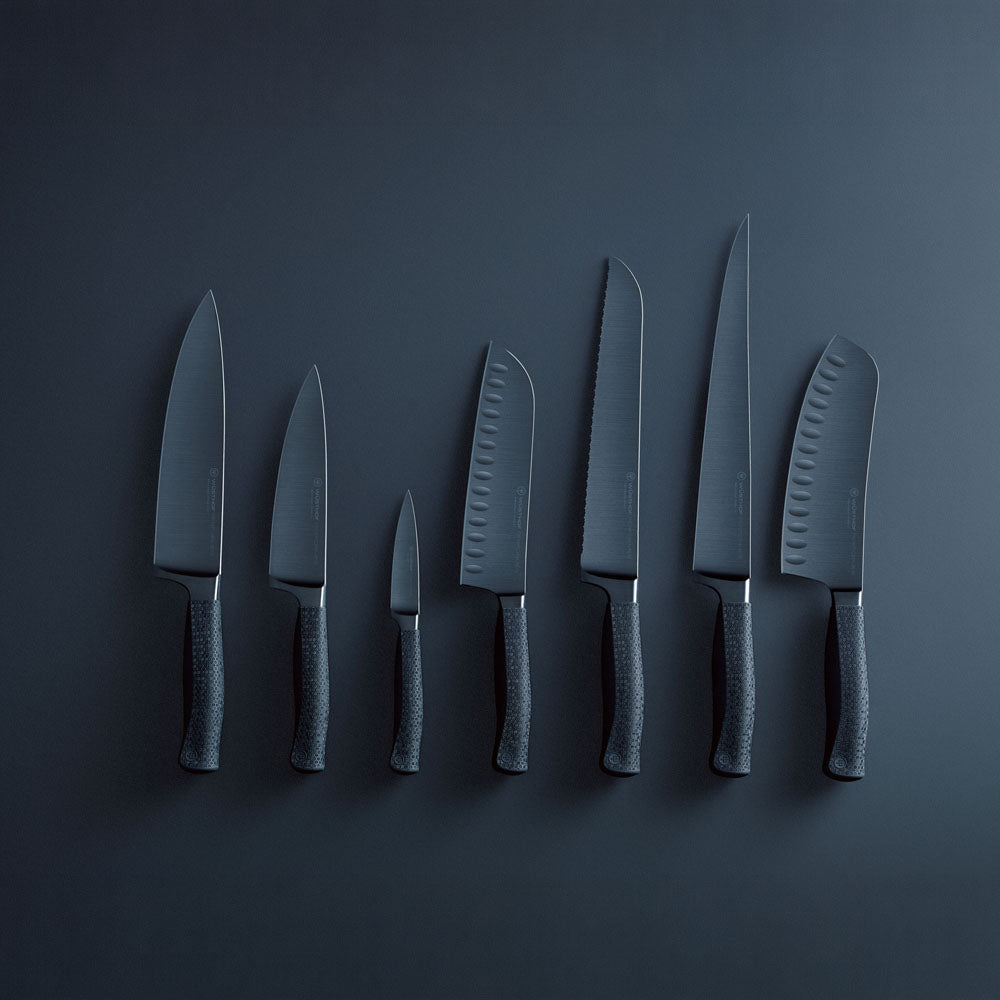 Performer knives are enhanced with a deep-black Diamond-Like Carbon (DLC) performance finish, which makes our blades uniquely strong and durable. This finish is heat-resistant, scratchproof and resilient to damage. No matter the conditions, it sets new standards for frictionless slicing. The non-slip Hexagon-Power-Grip© design on the handles guarantees unmatched control with every cut.