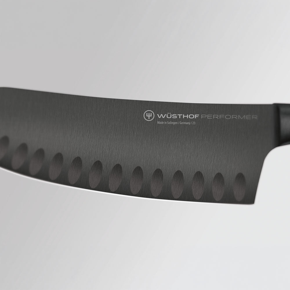 The Performer 17cm Hollow Edge Rotoku, a WÜSTHOF innovation, is the evolution of the classic Santoku. Fine slicing, speedy chopping, precise serving - this blade masters every task with the ultimate dynamism. The wide blade offers perfect control and also serves as a practical tool: use it to scoop and transfer ingredients from the cutting board to the skillet or serving bowl.
